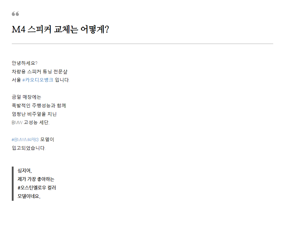 [ BMW M4 F83 ] ½ºÇÇÄ¿ Æ©´× (¼¾ÅÍ, ÇÁ·ÐÆ®)